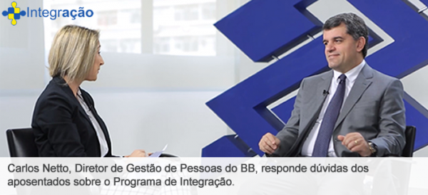 Carlos Netto, Diretor de Gestão de Pessoas do BB, responde dúvidas dos aposentados sobre o Programa. Já estão no ar os vídeos onde Carlos Netto, Diretor de Gestão de Pessoas do Banco do Brasil, responde às perguntas feitas pelos aposentados do BB sobre o Programa Integração. Os vídeos foram divididos em duas partes. Na primeira,…