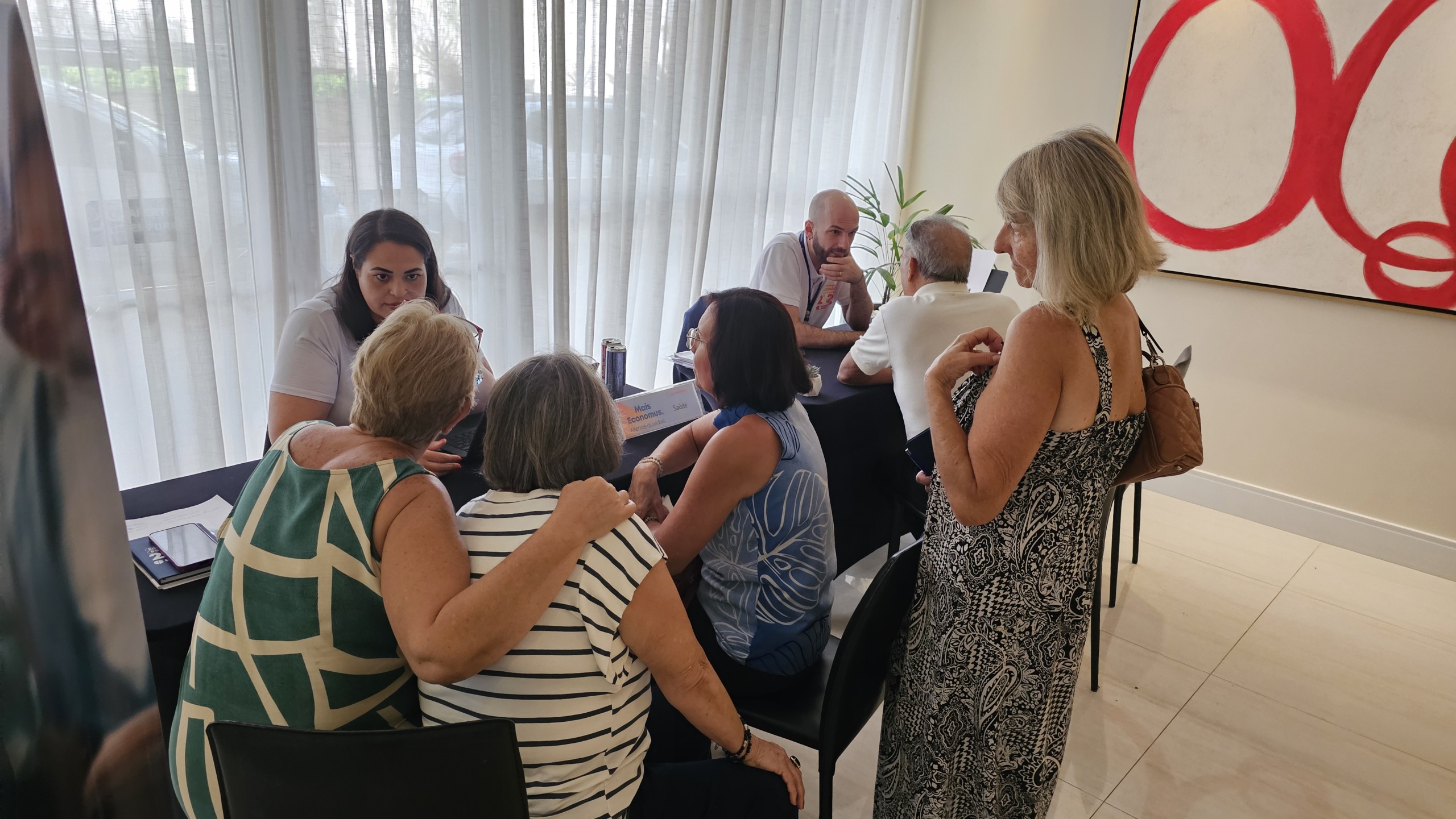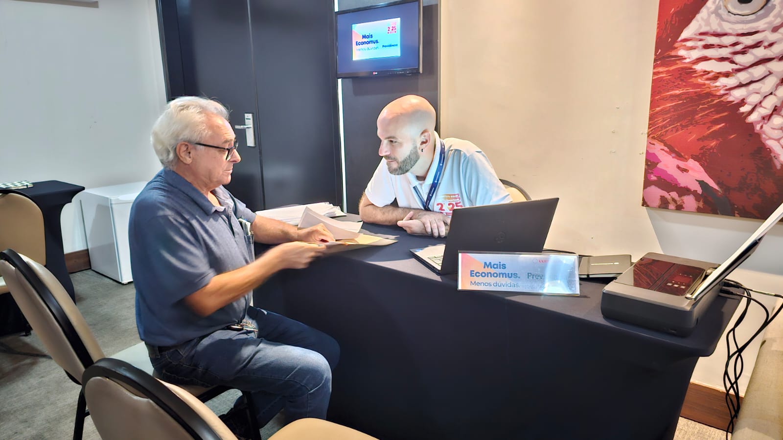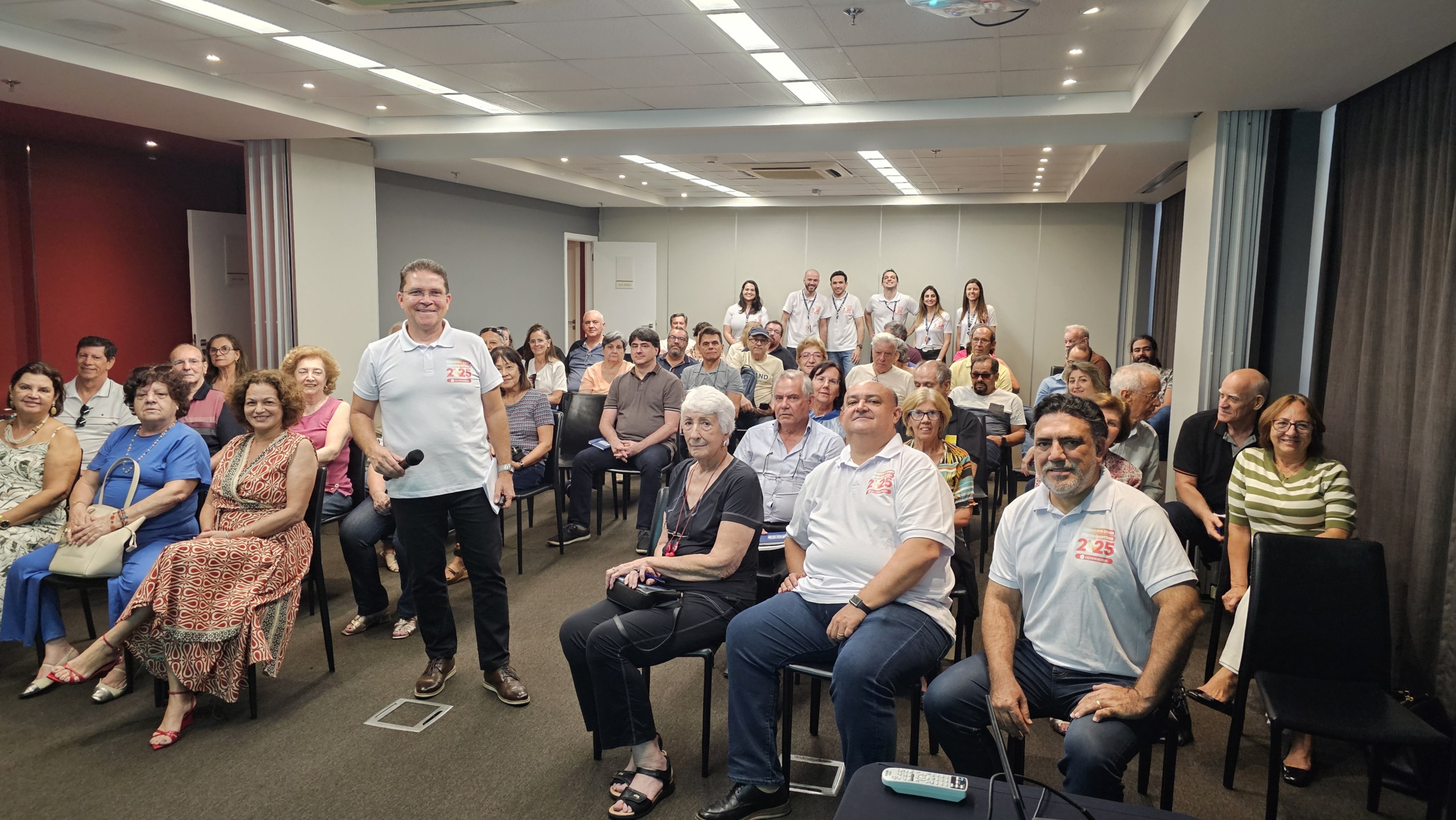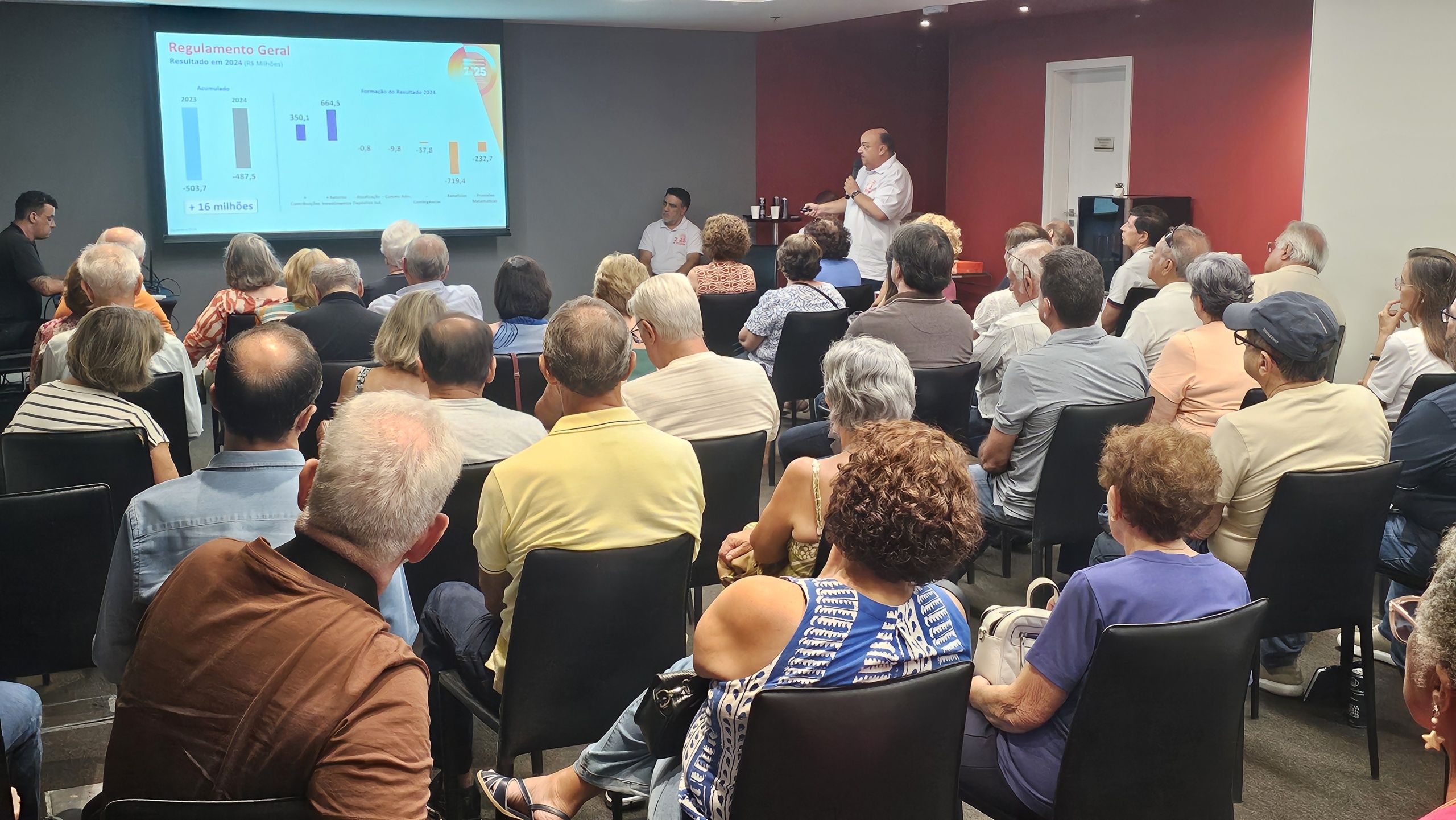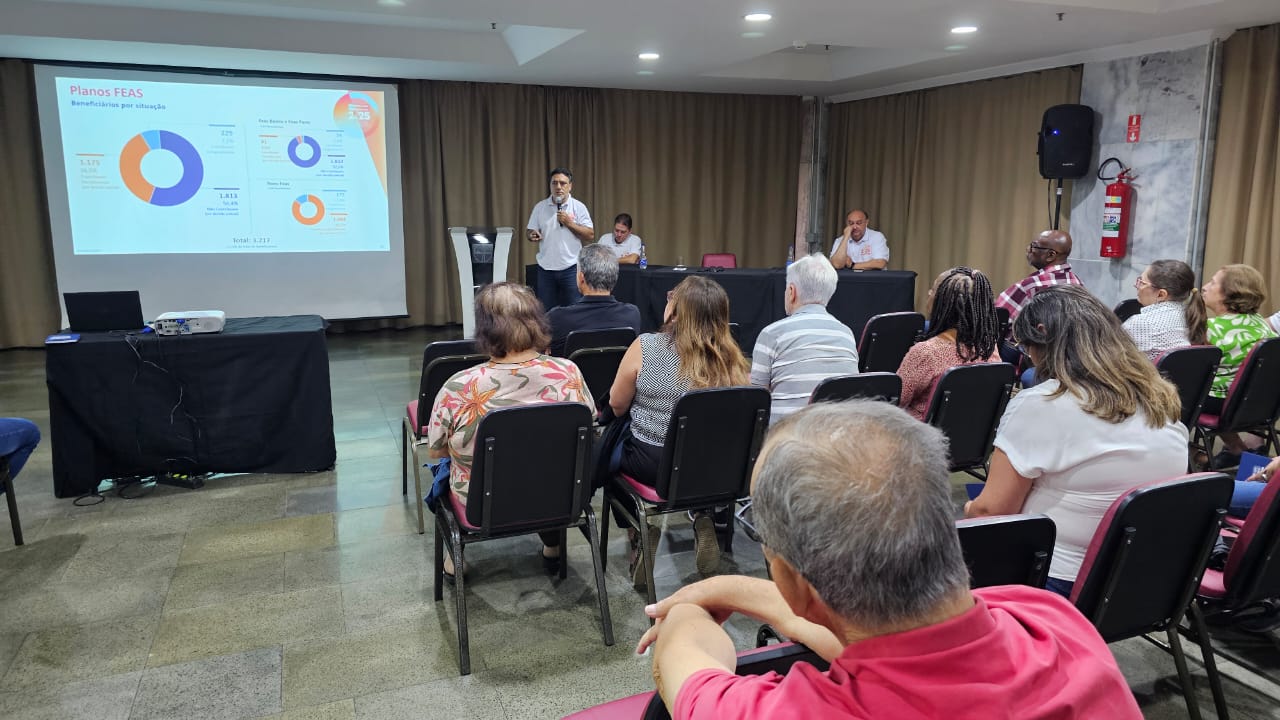 Além de poder tirar dúvidas diretamente no local, com a equipe Mais Economus, os participantes puderam assistir à apresentação dos diretores, que trouxe resumo do RAI 2024, perspectivas para este ano e ações em andamento. Também foi possível fazer perguntas diretamente para eles, mais uma forma de aproximação dos participantes com as lideranças do Economus.