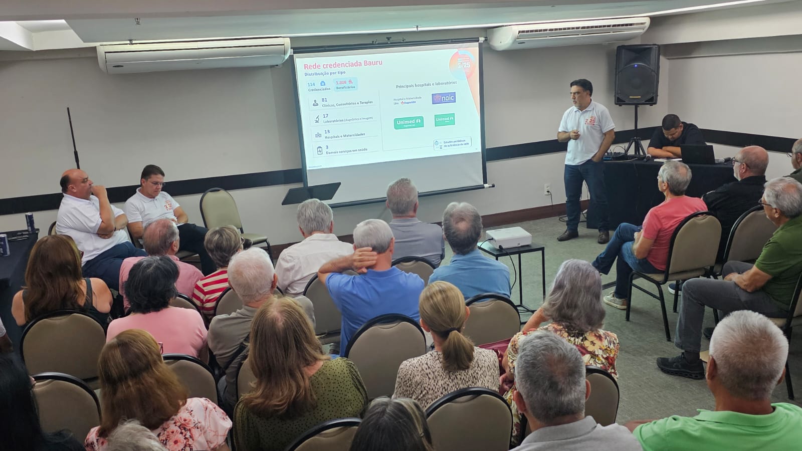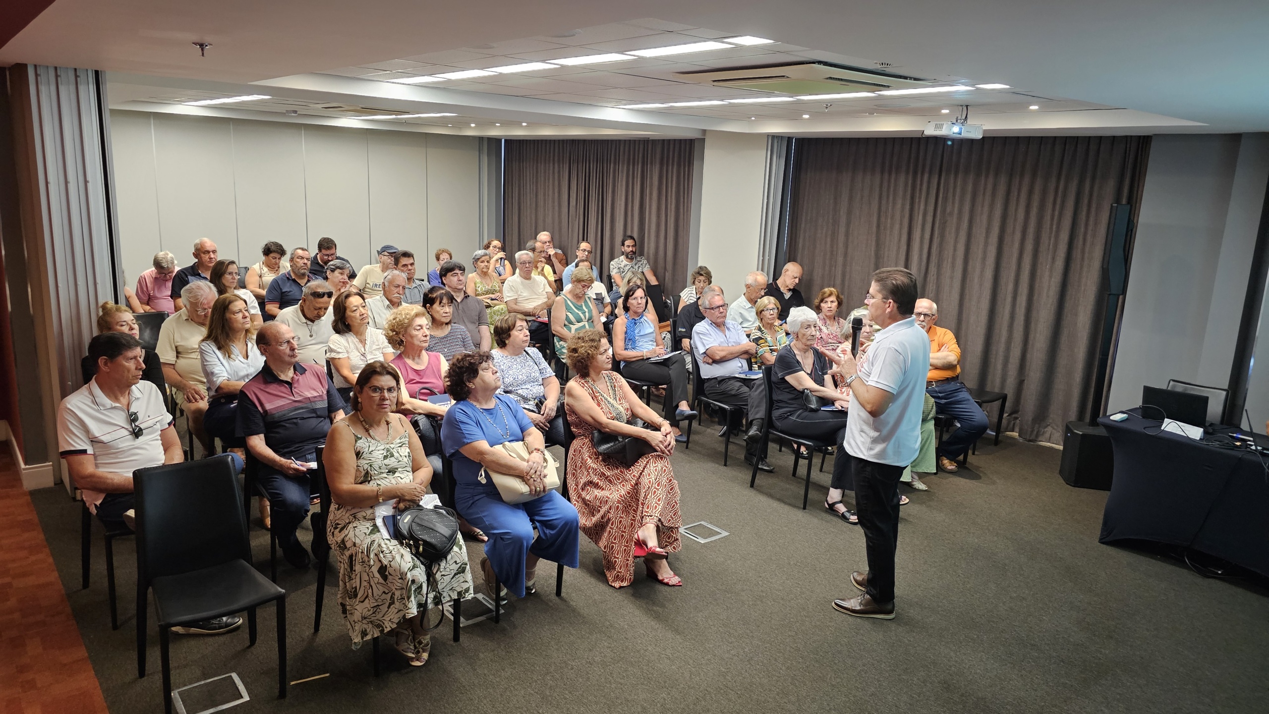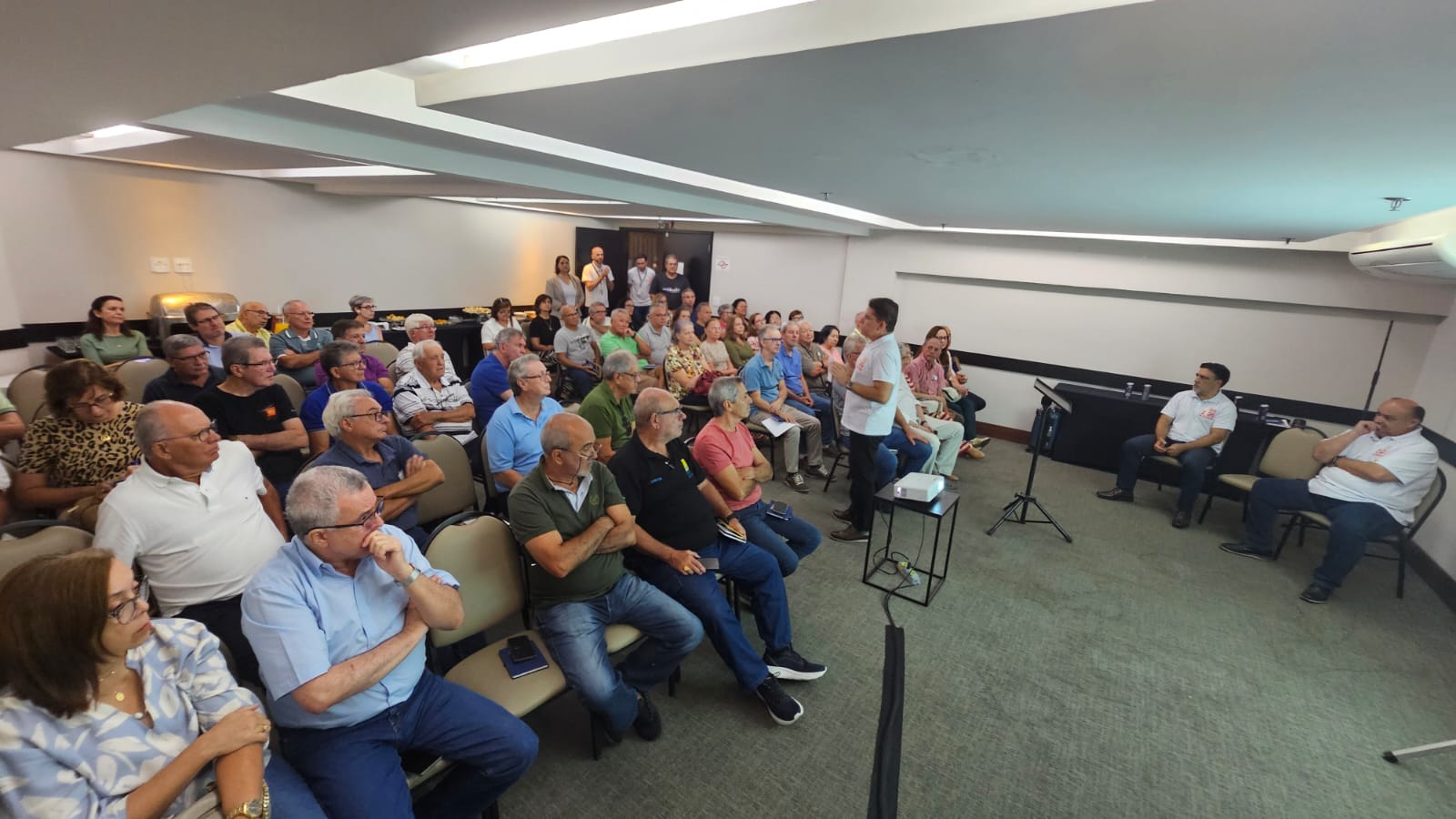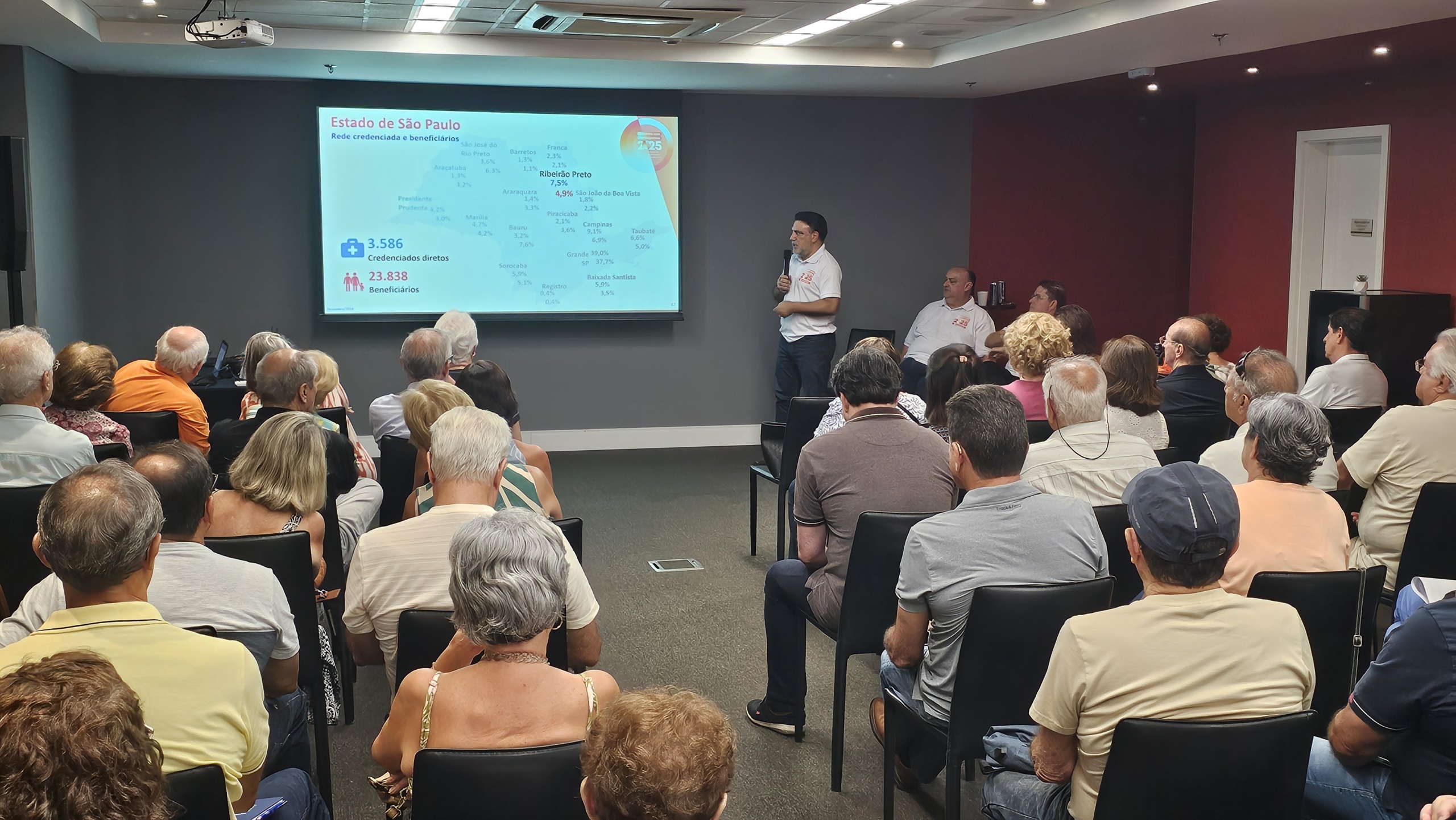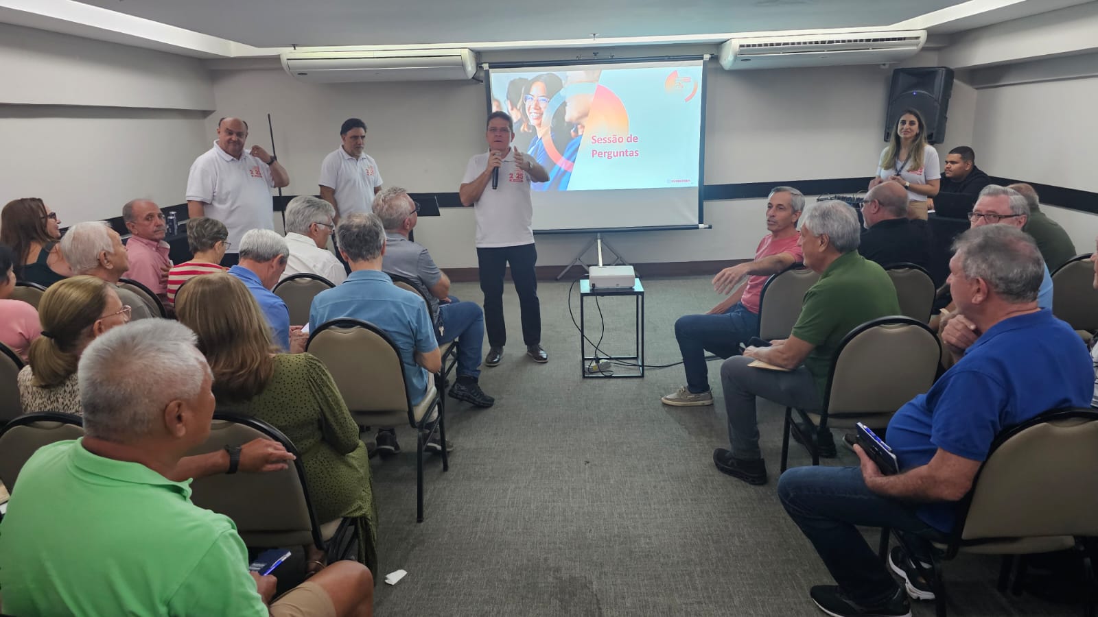 Além de poder tirar dúvidas diretamente no local, com a equipe Mais Economus, os participantes puderam assistir à apresentação dos diretores, que trouxe resumo do RAI 2024, perspectivas para este ano e ações em andamento. Também foi possível fazer perguntas diretamente para eles, mais uma forma de aproximação dos participantes com as lideranças do Economus.