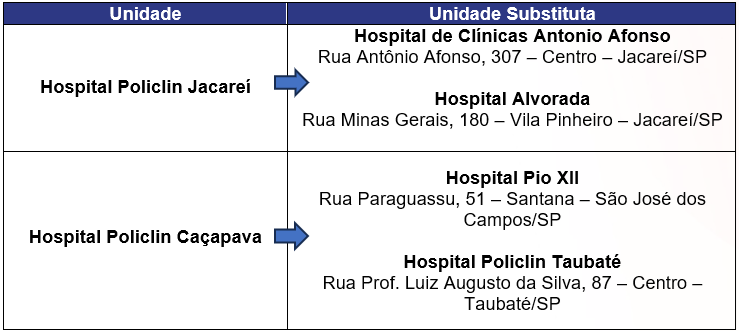 Encerramento das atividades das Unidades Policlin – Caçapava e Jacareí