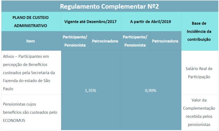 Segue abaixo o custeio das taxas para Cobertura das Despesas Administrativas do Regulamento Complementar n°02: